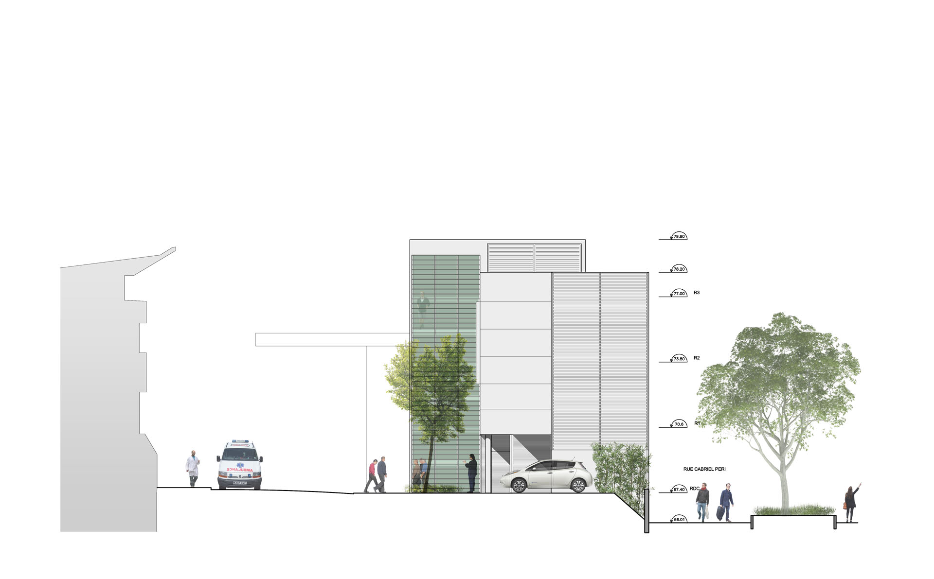 mission complète (base loi MOP) | type construction neuve | maître d'ouvrage AP/HP | maître d'œuvre Charles Delamy architecte mandataire | concours 2015 | surface 689m² | budget 7.263M€ | lieu Le Kremlin-Bicêtre (94)