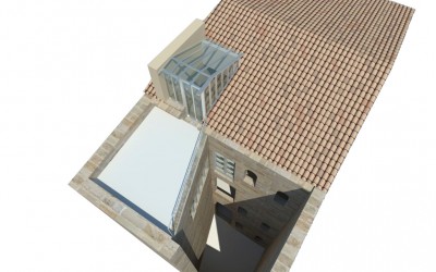 Réhabilitation complète d'un immeuble en pierre de 4 niveaux dans le secteur classé de Bordeaux, avec création d'une terrasse dans le volume du toit et d'un escalier intérieur.