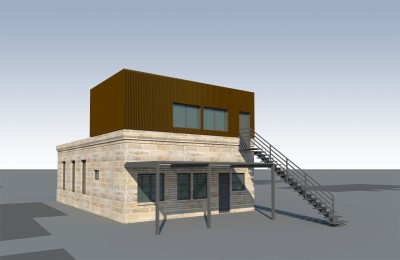 Extension habillée en pierre naturelle, et surélévation en mur ossature bois et bardage de bois.